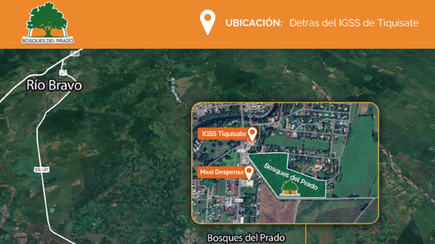 Con una ubicación privilegiada, Prados del Bosque se encuentra al costado de la Colonia El Prado y detrás del IGSS de Tiquisate. Esto te brinda fácil acceso a una variedad de servicios y comodidades.